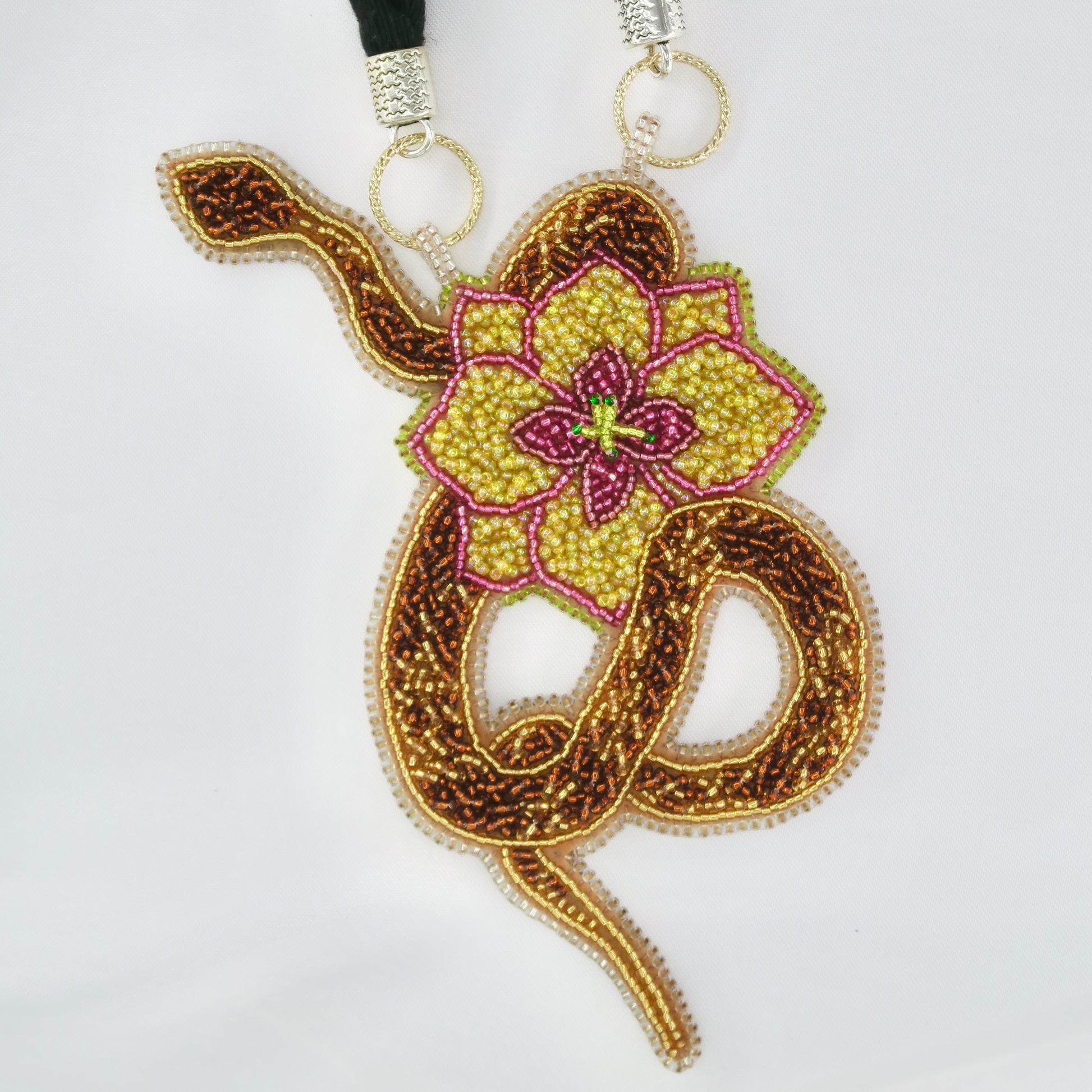 Smooth and sleek, Velour is a brown serpent with a touch of nature’s elegance, adorned with a delicate flower. This piece brings together strength and softness, capturing the perfect balance of power and beauty.